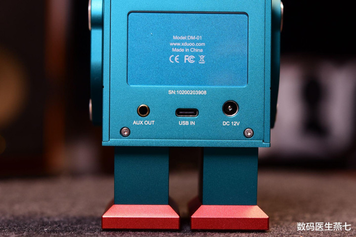 ▲机身正面细节展示,DM-01机器人的那双眼睛是可以亮灯的,通过不同颜色代表不同的音源输入模式以及采样率。