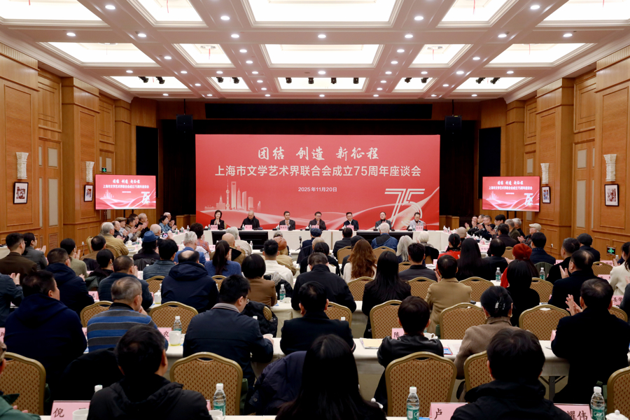 “我想衷心地感谢文联和舞协长期的关怀与培育,感谢这个温馨的大家庭,不仅扶持青年艺术家崭露头角,助力成熟艺术家勇攀高峰,更推动优秀作品从专业舞台走向广阔天地,最终深深地走进人民的心中。”昨天,上海市文学艺术界联合会成立75周年座谈会在文艺会堂举行,会上歌唱家廖昌永作为艺术家代表这样说。昨天,上海文艺人以“团结、创造、新征程”为名义,喜气洋洋地相聚在一起,回顾过去,展望未来,为更好地再出发积蓄能量。